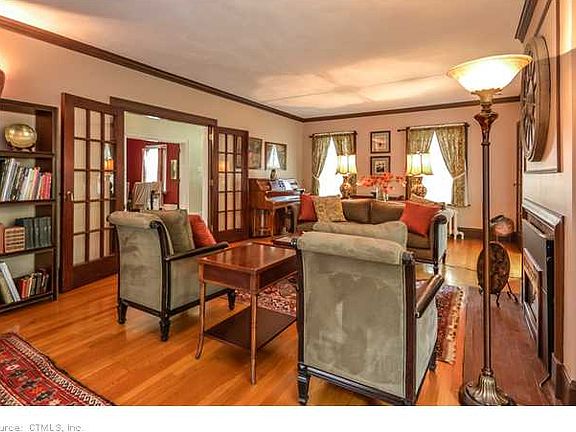 Striking colonial w/fantastic floorplan. Formal LR and DR, den, sunrm w/fp. White kitchen w/dbl pantries, eat-in space, laundry. Four large bedrms, 2 baths, sleeping porch on 2nd flr. Au pair/in-law space on 3rd. Fenced yrd, patio, gardens, 2-car garage.