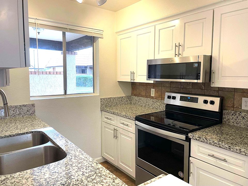 Charming 2-Bedroom, 2-Bath Condo in Chandler Ready for Immediate Move-In! This beautifully updated, single-story condo in Colonia Coronita offers 1,075 SqFt of modern living space. The remodeled kitchen features granite countertops, stainless steel appliances, and upgraded cabinets. Both bedrooms are spacious with ample closet space, and one includes a ceiling fan. The bathrooms are also updated with modern finishes. Enjoy laminate flooring throughout. Relax on the front porch or back patio. The condo includes a washer/dryer, assigned covered parking, and access to the community pool. Located just north of the 202 San Tan with easy access to shopping and freeways. Don't miss this great rental opportunity schedule a tour today! Tenant pays electricity; owner covers HOA fees and water. Pets are welcome with a $35/month fee. No smoking allowed.