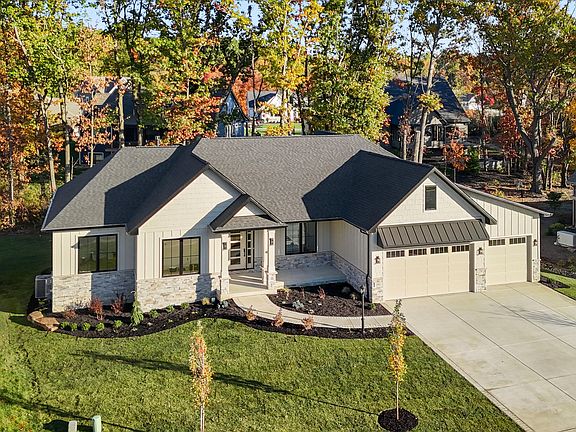 Exceptional value for new construction at a low 217/per square foot! Discover the perfect blend of comfort and style in this exquisite ranch home situated on a wooded lot in Valparaiso's Sagamore Subdivision! The open concept design creates a sense of flow and spaciousness throughout making this home perfect for entertaining. 5 bedrooms, 4 bathrooms, and finished daylight basement. Great room with beautiful fireplace opens to dream kitchen with gorgeous cabinetry, high end appliances, quartz island, and walk-in pantry. Spend evenings relaxing in the screened porch overlooking serene wooded views. Owner's suite features huge custom closet with walk through to laundry room, luxury bath with custom shower, and free standing tub. Daylight basement will leave a lasting impression with gorgeous wooded views, rec room with beautiful wet bar, 5th bedroom, spacious flex room, full bathroom, and large storage room with shelves! Professionally landscaped, irrigation system, LP Smartside, and 3 car garage featuring floor drains plus hot and cold water. Award winning schools and Low Taxes! Schedule a private tour today!