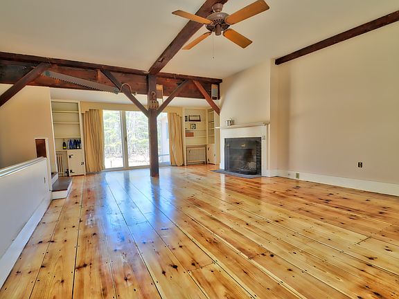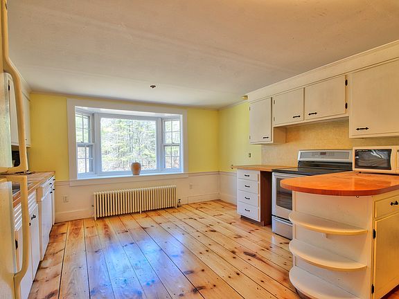 Country antique charmer. Relax and enjoy the flowing stream that runs through the backyard as you soak up the sun during the glowing days of summer. This home features a first-floor master bedroom and bathroom with sitting room. Exposed beams, white pine floors, brand-new boiler. Attached multi-level barn and workspace IDEAL FOR WORKSHOP, CRAFTS, STUDIO OR IN-HOME BUSINESS. Enjoy a three-season room off the kitchen and gathering room. Living room with fireplace and family room with exposed beams and fireplace. The large eat-in kitchen opens to a three-season room that looks out over large deck with views to beautiful river frontage. The attached barn previously served as an antique shop. Bring back the beauty and make this house a HOME once again. Town tax card shows home with 2 bedrooms. Plenty of rooms here in this home!