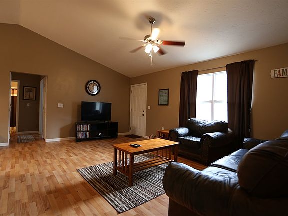 Spacious Ranch home situated on private 1+ acre lot with wooded back yard and creek. Home features cathedral ceiling, open floor plan, private master suite w bath and lg walk-in closet, large rooms throughout, gourmet kit w/abundance of cabinets, walk-out breakfast to deck, newer laminate floors, fresh paint, finished walk-out basement, abundance of storage.