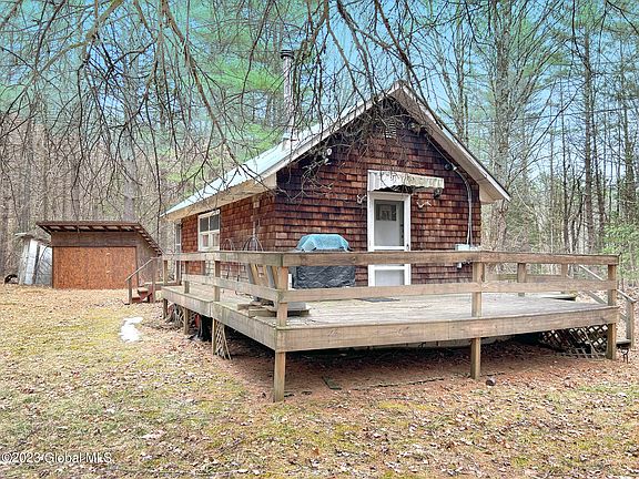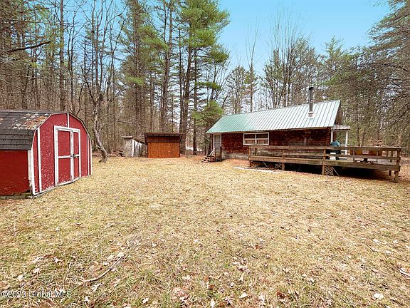 This seasonal camp is in a very private location near Crystal Lake and between Brant Lake and Bolton Landing. The camp is built on piers and includes two out buildings. Small steam on one side of the property and mostly wooded. Town maintained road accessible year round. Near several hunting areas and set up to sleep 6 on bunk beds, includes woodstove for long season use.