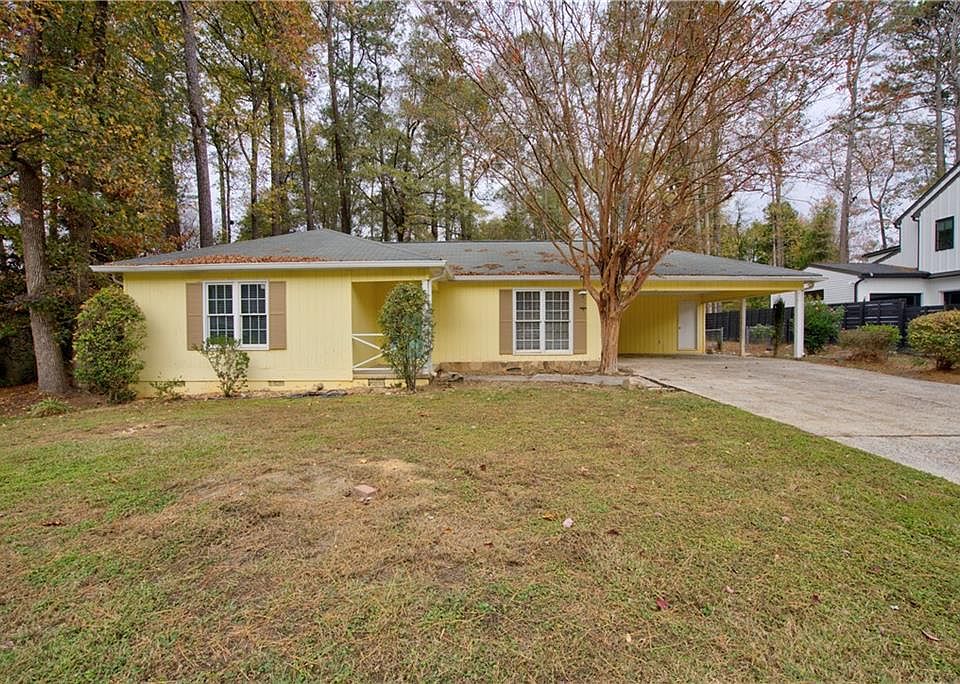 Hurry to this well-loved home on a wonderful level lot with a private back yard in the Garden District, just a few blocks walk from all the dining, shopping and entertainment of Downtown Alpharetta. This cute home has great bones, and just needs updating to make it your perfect place. Home features 3 bedrooms and 2 updated bathrooms. The main area floor plan includes foyer, kitchen, laundry room, dining room and family room with fireplace. These spaces could be opened up to have a wonderful open space to enjoy. Nice level lot and 2 car carport, which could easily be converted to a 2 car garage. Structural engineer has inspected and determined the foundation to the roofline to be sound. Aquaguard warranty on crawl space. If you want to be within walking distance to downtown Alpharetta, and don't want a large home, this is a great opportunity to be all in with renovations/repairs, at 1/2 to 1/3 the price of new construction! No HomeOwners Association!