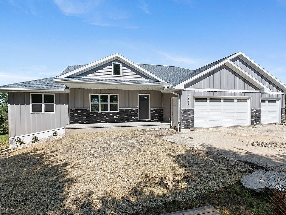 Discover the perfect blend of luxury and tranquility in this new construction home, nestled on a .6+ acre lot on a quiet cul-de-sac facing the beautiful Par 5 golf course. Located in the desirable Mishicot School District, this property is moments away from parks, restaurants, and local amenities. The home features a practical split bedroom design, trey ceilings in the living room and primary bedroom, and a kitchen with a large island for additional counter space. The basement is prepped with stubbing for a bath and bedroom, offering great potential for future expansion. A large pantry and direct basement access from the garage add convenience to the well thought out design. Offering a serene retreat in a vibrant community, this home is the ideal setting for your new beginning.