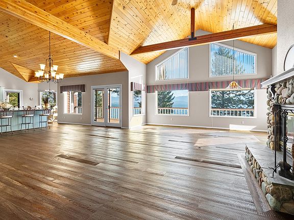 Not just a lake home…this is a lifestyle. With 150+ feet of beautiful lake frontage, this raised rancher has room for the whole gang, both inside and out. There are 5 bedrooms and 5 bathrooms, plus multiple entertainment spaces, including a generous main floor living room and a separate office/den, as well as the expansive main floor primary suite. Downstairs is another large living room with an additional billiards/game room and three more bedroom suites. The upper level has an expansive deck to highlight the lake from each room, and the lower level walks right out to a generous patio and then to the manicured lawn leading to the water's edge. There is a large custom three slip dock, including two boat lifts and a beautiful patio area overlooking the lake with a custom pizza oven, as well as a beautiful custom stacked-stone sea wall. The beautiful lot has a perfect mix of huge towering pines, a wooded area, and a stunning lawn, plus a large driveway with lots of extra parking for toys and guests. This stunning property sits along an exceptional section of Flathead Lake and is located just minutes from the bustling communities of Lakeside and Somers. The world-class views take in the entire east front of the valley with a panoramic view of the lake. It is also nestled at the end of a dead-end road with exceptional privacy.