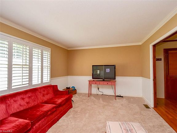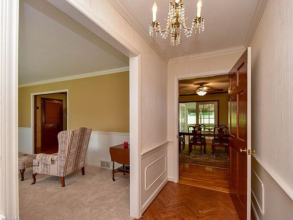 Fantastic home in great location -close to downtown Mocksville on large beautiful lot! One level brick home offers open layout for living/kitchen/dining & sunroom area. Bright kitchen with granite countertops & custom cabinets. Refrigerator, washer & dryer to remain. Dining room/Den has gas logs fireplace. Huge sunroom overlooks backyard with mature landscaping. Master BR with separate sitting area. 12x24 storage bldg. Basement is heated/cooled & ready for new owner to put their personal touch on it.