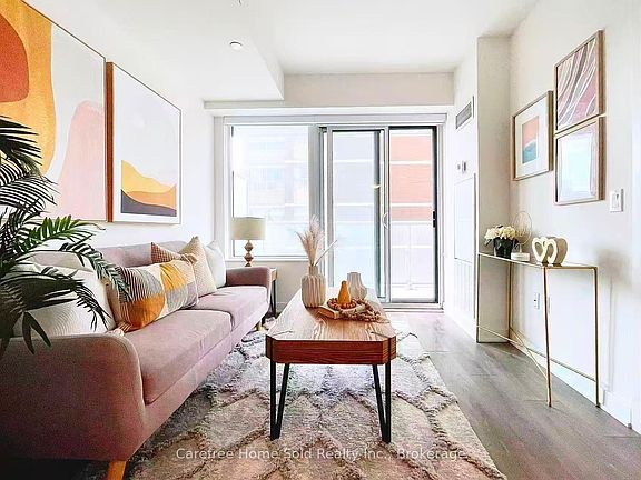 Modern 1-bedroom+den, 2 full bath condo in the heart of Midtown Toronto offers resort-style living and a highly fexible layout that can easily function as two bedrooms, each with its own bathroom. Built in 2022 by an award-winning developer, Pemberton, CityLights on Broadway boasts more than 18,000sqft of indoor amenities and 10,000sqft of outdoor space. The suites' open concept design combines kitchen and living spaces seamlessly over 600 sq ft of interior space and extends outward to a 100 sq ft south-facing balcony. A modern kitchen with stone counters, integrated appliances, sleek cabinetry fows into the living area, which opens onto the balcony, a private city oasis. 9 ft ceilings and a wall of windows bathe the home in natural light, while the bedroom features a large sliding closet and a luxurious 4-pc ensuite bathroom. Residents enjoy access to the Broadway Club, an amenity space that includes two gyms, a yoga studio, an indoor basketball and badminton court, media rooms and a music room. Outdoor amenities resemble a resort, with two swimming pools, a rooftop terrace, barbecue areas, fre pit lounges and an amphitheatre. A 24-hr concierge, visitor parking and guest suites provide convenience and security. Maintenance fees cover common elements, building insurance and water, ensuring predictable monthly costs. The location is just a 7-min walk from Eglinton subway station, and the forthcoming Crosstown LRT promises even easier commuting. Around the corner are diverse dining options, from Italian at LaVecchia and Japanese fare at Kasa Moto to specialty coffee at Tertulia Espresso Bar and local spots serving soup dumplings and pan-fried buns. The condo is close to highly regarded schools, including North Toronto CI, and it offers easy access to parks such as Redpath Parkette and Eglinton Park. With a Walk Score of 91 and a transit score of 88, Mount Pleasant West is a diverse, lively neighbourhood where car-free living is entirely feasible.