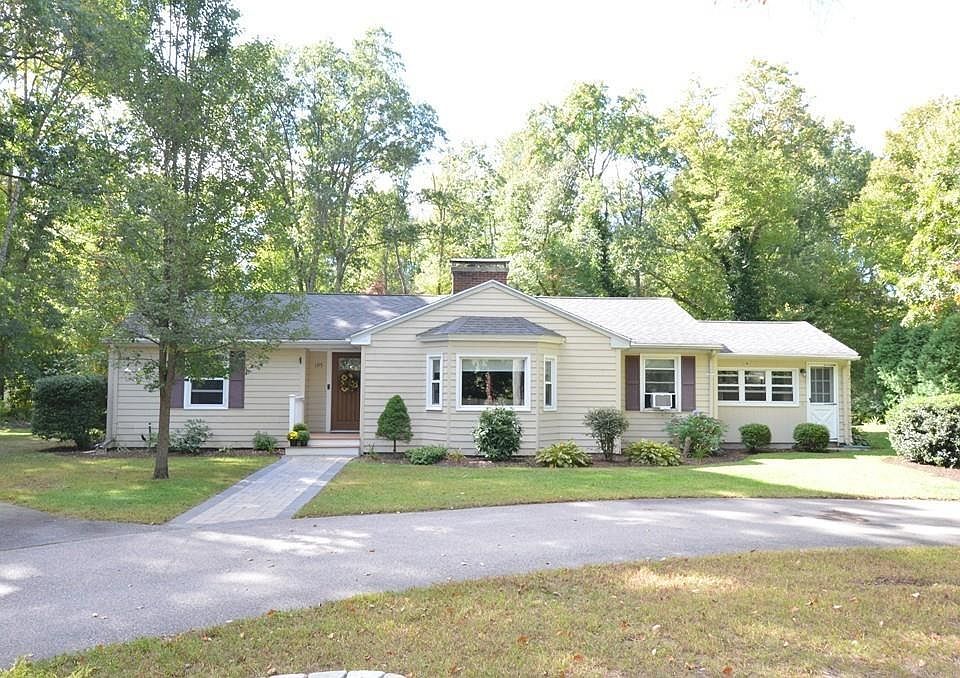 Enjoy updated single level living in this sprawling ranch style home in a great commute location close to highways and shopping. Oversized vaulted ceiling family room has gorgeous wide pine floors and wood stove fireplace. Bright and light front to back dining room accommodates large holiday gatherings. Plenty of room to cook and dine in the huge eat-in kitchen with breakfast bar. Bedrooms have double closets or spacious built-in storage. Third bedroom currently doubles as home office. Come see the incredible serene backyard paradise, an almost fairytale setting with the perfect combination of sun and shade on two thirds of an acre. This is your ideal relaxation escape from your day to day routines. First floor laundry completes the ease of one level living. Updated roof, windows, bathroom, 200 amp electric service, carpet, appliances, heating system, hot water and flooring. Seller will negotiate offers between $325,000 and $350,000.