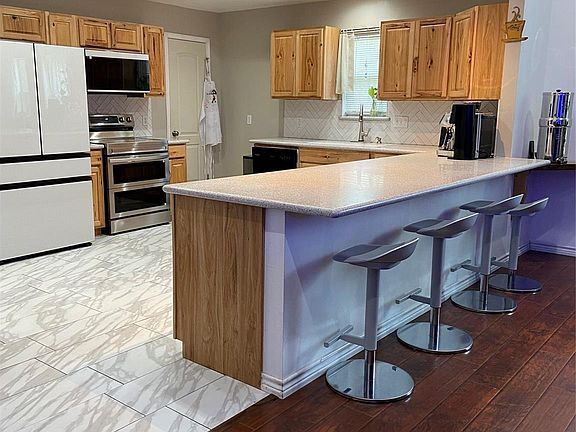 Welcome to this hidden gem brimming w/ exceptional features! Imagine the savings w/ $40k owned solar panels, complemented by a stunning RedSea Reefer 650XL saltwater fish tank included if desired, complete with a filtration system and vibrant tropical fish valued at over $6,500. Enter the inviting living room, where vaulted ceilings and an elegant electric fireplace create a cozy ambiance. Fall in love with the spacious kitchen that boasts ample cabinet and countertop space, along with a new oven that can be utilized as both a single and double oven. The versatile downstairs boasts a lg mudroom with a closet, leading to a craft area and home gym, along with a convenient laundry and half bath. The expansive garage measures 41' x 19' x 10', offering room for up to four vehicles and still room for a workshop, complete with two access doors for easy entry from your carport to the fenced backyard. This home is a must-see, showcasing a wealth of unique amenities that truly set it apart!