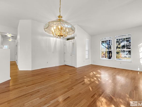 Discover the comfort and ease of single-story living in the highly sought-after Edgewater community. This home is ideally located just minutes from fantastic shopping, dining, and a short distance to the picturesque Truckee River. Inside, gleaming hardwood floors flow throughout a bright and sunny floor plan designed for modern living. Additional highlights include, laundry room with a utility sink, 3 car garage equipped with generous storage cabinets. Situated on a spacious, SEE EXTENDED REMARKS, fully fenced corner lot, the property features mature trees, a covered patio, and raised garden beds, perfect for relaxing or entertaining outdoors. You can also access the community swimming pool. Don’t miss this fabulous opportunity to enjoy the tranquil lifestyle of this vibrant neighborhood.