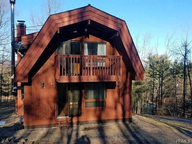 3 Bedroom Contemporary tucked away with mountain views yet just minutes to town! Perfect retreat or commuter location. The wood burning stove provides ambiance and warmth with the cabin like decor with wood exposed beams, knotty pine ceilings & walls. The lower level features an open floor plan with pergo floors, updated kitchen with new cabinets & gas range. The lower level bedroom also offers one level living with a full bath & bedroom. 2nd floor has parquet floors and two spacious bedrooms with a center full bath. The master bedroom has sliders that lead to the private balcony. The perfect place to read a book and bird watch or enjoy your morning cup of coffee. Desirable Monroe Woodbury School District, one hour to the city and less than 5 minutes to Interstates and shopping. New Boiler in 2017, Septic inspected and Pumped in 2018, New Well pump, New owned water softener, UV system for water filtration 2017. Perfect water with no water bill! Taxes listed do NOT include STAR savings