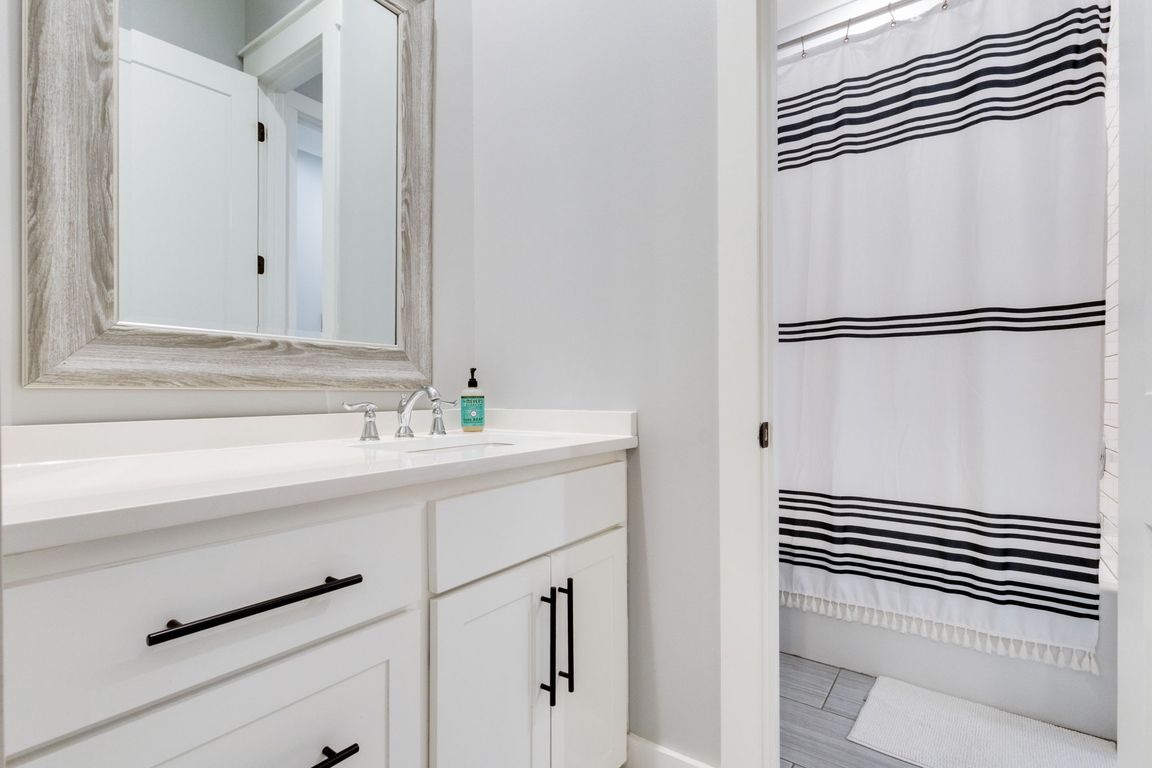 Stunning 4 bed, 3 bath home blending French Country charm with modern elegance! The exterior showcases brick and stucco accents, wood shutters, and an inviting arched entry. Inside, an open layout features a chef's kitchen with floor-to-ceiling cabinetry, subway tile, double ovens, 6-burner gas cooktop, and a large island with bar ...