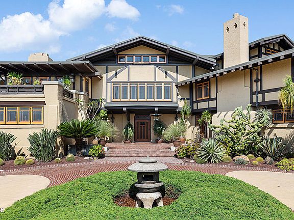 The Robinson House, masterfully crafted by architects Charles & Henry Greene in 1906, sits majestically on 3.36 sprawling acres overlooking the vast Arroyo Seco bluffs & the historic Colorado Bridge. Meticulously restored over 7 years by its third owners, this iconic mansion proudly showcases exquisite wood detail & artisan craftsmanship from a bygone era blending seamlessly with modern technology & amenities for today's discerning lifestyle. A long gated driveway, past wondrous landscaped gardens, offers a first breathtaking view of this architectural treasure. A dramatic two-story entry foyer, clad in rare Port Orford cedar, welcomes guests, and features a cantilevered staircase & an original mahogany stained-glass chandelier. Spectacular & spacious public rooms, furnished in original Greene & Greene furniture or period reproductions, capture panoramic views of the Arroyo. A stunning LR with Batchelder-tile fireplace & a handsome library with built-in inglenook seating & fireplace, provide intimate spaces to host friends. Enjoy romantic sunset views as you dine at a custom sushi bar, or in the magnificent formal DR with a gorgeous stained-glass chandelier. French doors lead out to a glorious terrace, an infinity-edged pool perched dramatically on the Arroyo banks with swim-up bar, an outdoor kitchen & numerous mesmerizing garden destinations. The newly-remodeled gourmet kitchen is a chef's dream with top-of-the-line appliances, a 14' center island & a built-in breakfast area with spectacular vistas. Four generous BR suites with custom closets & panoramic views, and a laundry room, grace the second floor. A back staircase continues to a darling guest suite with sitting room on the third level. A 2265sf basement houses a media room, wine cellar, billiard room, card room & storage rooms. Bask in the CA sun and enjoy the many enchanting garden rooms after an invigorating swim on the Arroyo's edge or a pickle-ball match. Stroll the leafy paths by the stream & wisteria-covered bridge; savor delicious pizza hot from the oven; relax by the romantic lily pond; enjoy delicious fruit from the orchard; be intoxicated by the fragrant rose garden; mediate in the Zen Japanese garden; camp out in a teepee under the night stars; stroll to Old Town for dinner & shopping; or catch an easy freeway to DTLA or the West side... the lifestyle possibilities are truly endless when you seize this magical once-in-a-lifetime opportunity to experience Pasadena's ultimate Paradise!