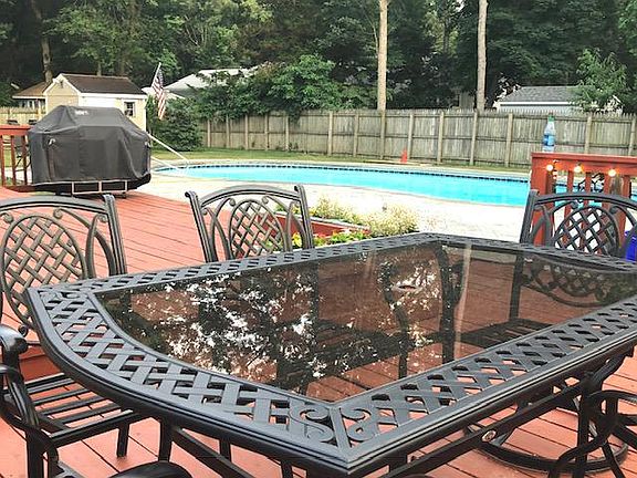 STUNNING LAKE VIEWS!! Extraordinary property nestled within the tranquil Birchwood Lakes community in Medford. This home is situated on a large piece of ground, with manicured lawn, terrific curb appeal, and is beautifully landscaped with lots of privacy. Once inside, you'll find a home that is fresh, bright, and meticulously maintained with more space than you could imagine. As you enter the home, notice the new Dark Wood floors in the expansive formal living room with a beautiful bay window that takes in all the spectacular views of the Lake. The Living room also features a beautiful modern gas fireplace. As you continue your tour into the formal dining room, notice the windows overlooking the beautiful grounds and the french doors that opens up to the deck. Delight in serving those meals from your beautifully designed eat in kitchen with tons of cabinet space, a large center island, granite countertops, stainless steel appliances, and wood flooring. The Breakfast area opens up to a large deck, overlooking the picturesque backyard, which features, an Inground Pool, new stamped concrete, fire pit and a fenced-in yard, creating a perfect atmosphere to entertain your guests. Continue to enjoy entertaining, with an open layout lower level that boasts natural light creating a warm living space, notice the Huge Familyroom and Game room featuring a custom bar and a pool table. This level also features an updated half bathroom and a laundry Room. As you walk up the stairs, you will find four generous size bedrooms including a Master suite featuring two walk in closets and an updated master bathroom with a glass shower stall. this level also features another full bathroom shared by the three additional bedrooms. There is so much to love about this special Home, Make your appointment to see it today!