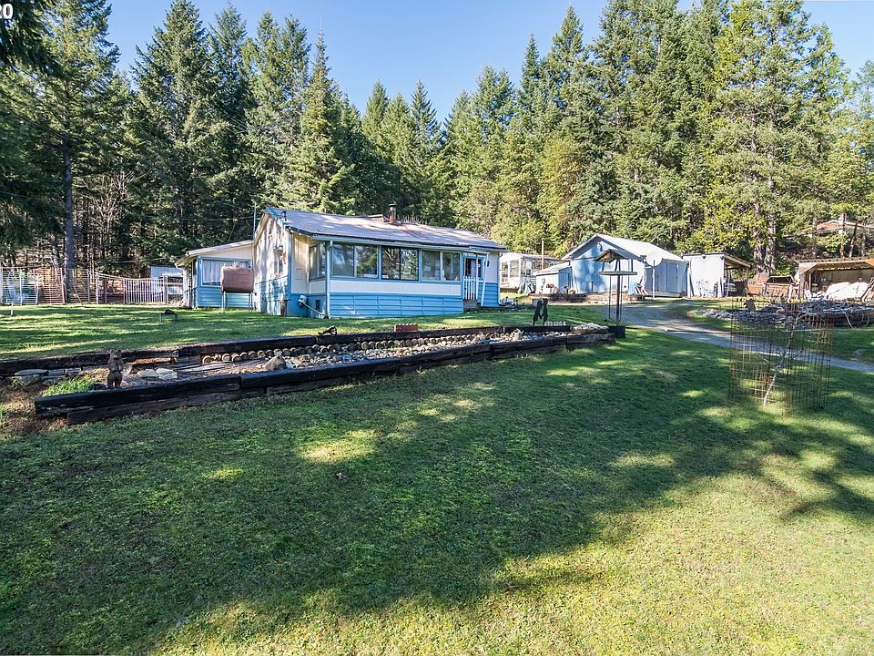 This forested setting is flat out beautiful: 1.57 mostly usable acres ringed by soaring pines, located just one mile from the center of people-friendly, small-town Glendale. Stunning and private, three bedroom/two bath home has been updated with vinyl flooring and a kitchen you can finish in to your dream kitchen. The well is high-producing, the septic was pumped in 2020. It’s a beautiful spacious home. The galvanized roof keeps it cool in the summer without air-conditioning, and a modern oil heating unit makes it super comfy in the winter. Huge garden area and lots of flat grassy areas to play on or gaze at the stars on the perfect summer night.