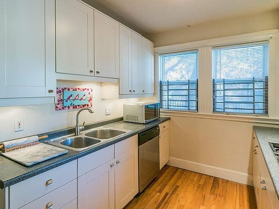 Stylish & updated 5 room / one bedroom condo offers expansive layout with parking, in building laundry and rear patio. Open floor plan ideal for entertaining: 2010 kitchen & appliances with breakfast bar and sun room ideal for home office or guest room. Hardwood floors, high ceilings, lots of light, private basement storage. Minutes to Forest Hills T station, Arboretum or Centre St shops and restaurants. This unit has been well cared for, building has newer heating system & awesome management company. Condo fee includes heat. Recent updates: front steps rebuilt, parking re-paved. Excellent investment opportunity - potential rent $ 2,200. Pet friendly assoc, dogs & cats welcome! Open Houses Thurs 11:45-12:15, Fri by appointment, Sat & Sun 1-2 PM. Any offers reviewed Tues 11/ 7 10 am.