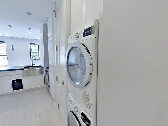 Exposed brickIn-unit washer and dryerModern bathroomHigh ceilingsStainless steel appliancesHardwood floorsUpdated kitchen