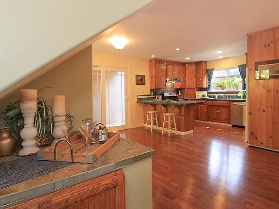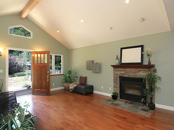 Sunny home on Sunnycroft! Homes rarely become available in this neighborhood. Tree-lined street reminiscent of old days with tidy homes and established landscaping. A circular driveway welcomes you to the stately home with spacious open living room that features high ceilings and a cozy fireplace. Extra-large master bedroom and bath addition in 2007, a quiet, private escape includes 2 large walk-in closets, with built-ins, as well as a sitting area or small office. Country-style kitchen featuring a breakfast bar and large dining area. 2 plus car garage/workshop w/large laundry room and storage. Private fenced wrap around deck. Enjoy the modern comforts of high speed connectivity, audio/video and a speaker system throughout the house. Updated features include on demand water heaters and dual paned windows. Stroll to the private neighborhood river beach area. In between Ben Lomond and Felton, very accessible, good commute location, close to schools & parks, 20 min to Santa Cruz