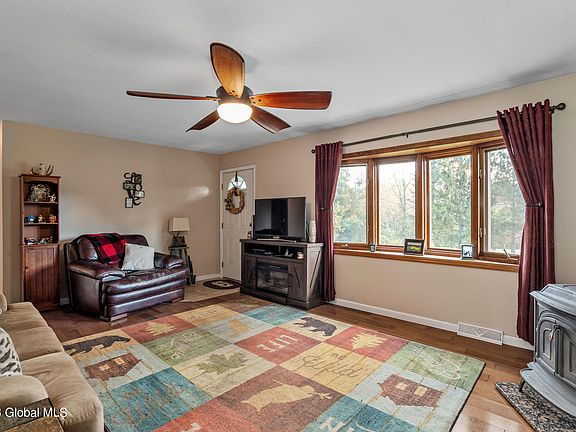 Beautiful ranch-style home on over 8ac provides plenty of opportunities to enjoy nature & the great outdoors. Property boasts a 3-bed, 1-bath home welcoming you in w/ a cozy wood-burning stove in the living room, eat-in kitchen has ss appliances & sliding glass doors that lead to the patio & yard large enough for all your gardening, recreational, or nature observing pursuits. The finished basement provides additional living space & storage. Property also features central air to keep cool during hot summer months, seller owned solar panels to help save on energy costs & an oversized 2 car attached garage providing ample space for vehicles, storage, or even a workshop. About 30 mins west of Albany & just over 1 mile to Thacher Park! Don't miss this incredible opportunity!