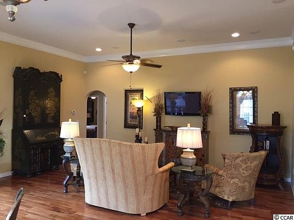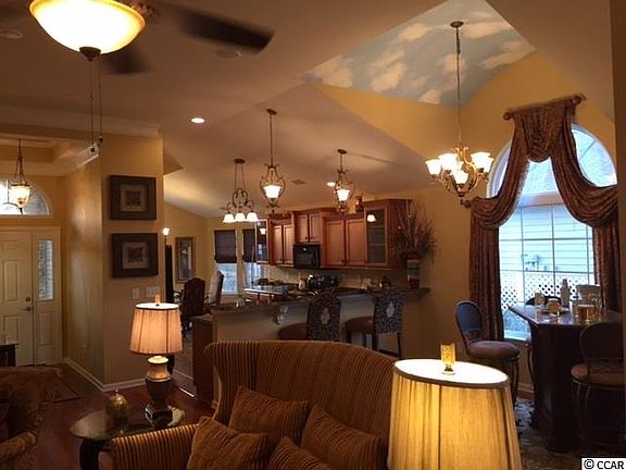 Contact Jessica or Melissa to set up an appointment to see this lovely home. The Welcome Center is no longer open. This Dolphin/Royal model home was built as a showplace achieving recognition in the "Parade of Homes" 2008. Several upgraded features are included: a decorative metal roof entry, a barrel metal roof over the dining room, custom paint, a tray ceiling in the foyer, crown molding, upgraded cabinets, Level -4 hardwood, Level-4 tile, granite counter tops with a waterfall edge, upgraded lighting, upgraded 34" bath vanities, shower doors, satin nickel bath faucets and fixtures, surround sound, whole house audio, a security system, and a 4-zone lawn irrigation system. Some furniture and accessory items in the home will convey. For a complete list of items that DO NOT CONVEY, please contact the listing agents. The following items DO NOT CONVEY: Great Room - large Asian inspired secretary and round book shelf. Bedroom 2 - Chest of drawers. Surfside Beach Club is a gated amenity rich community featuring a clubhouse, pool, exercise room, hot tub, Quoits pit, sidewalks on both sides of the street, a monthly Calendar of Events and Newsletter. Surfside Beach Club is a golf cart friendly community located less than 2 miles to public beach accesses, the Surfside Beach Fishing Pier, restaurants, shopping, entertainment venues, and more.