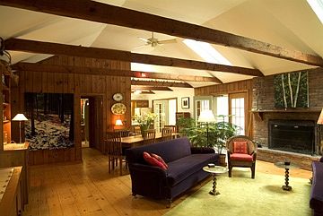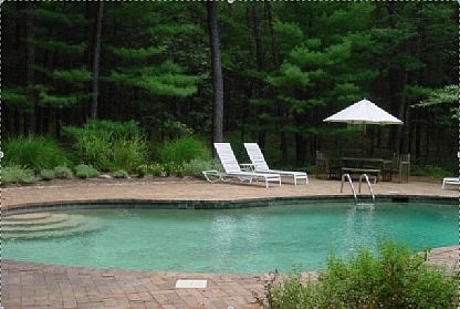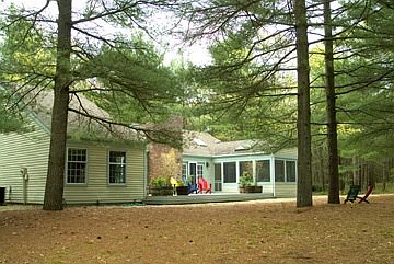 $17,000 for July. Nestled on over 3 wooded acres this home is a perfect "getaway". It has a large screened porch off the back of the house which overlooks a wooded setting and a path leading to the pool. Lovely beamed living room and a warm master bedroom with two additional guest rooms.