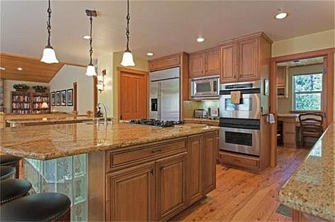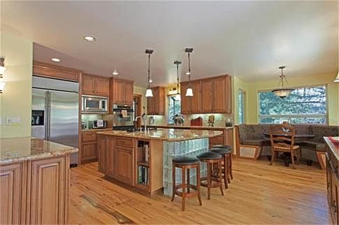 Listed By: Sue O Brien @ Mammoth Realty Group Immaculate home in Old Mammoth. Southfacing corner lot. Lots of sunlight streaming through the windows! Quiet neighborhood with rural feel. 3 bedrooms, den, 2.5 baths, office, large garage with separate workroom. Complete remodel done in 2002 -featuring large gourmet kitchen with granite. Vaulted ceilings, covered spa, storage shed, expanded deck and brand new roof! Large landscaped yard with auto sprinklers.