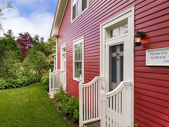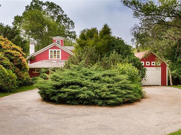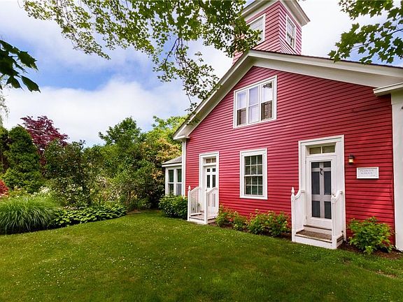 The historic Peabody Schoolhouse is a country retreat, situated close to beaches, but with easy access to main roads, the Pell Bridge and convenient shopping. Built in 1794 and first converted to use as a summer retreat in 1929. The Schoolhouse has been updated and restored by owner and noted residential designer John Peixinho. The estate-like grounds include a stone-lined brook, original stone walls, rhododendron borders and mature specimen trees. An outdoor porch, provides three season living space. A small barn with large screen doors, has been converted to a studio/living room. The Schoolhouse itself abounds with charm. The living room provides seating for three groups,features french doors that lead to the outdoor areas, includes a built-in window seat, and a wood-burning fireplace with an early 19th century Newport mantle with a surround of aubergine-colored Dutch delft tiles. One of the original coat rooms remain and functions as an entrance hall, while the other has been enlarged and serves as a dining room, but has also been used as a first floor bedroom. The first floor also includes a full bath and kitchen, with breakfast area. The second floor includes two bedrooms and one bath. One bedroom includes the bell tower with the original, functioning school bell. The Peabody Schoolhouse's park-like grounds are manageably-maintained but afford a private estate-like setting.The charming house is a welcome oasis in summer months and a wonderful get-a-way in the winter.