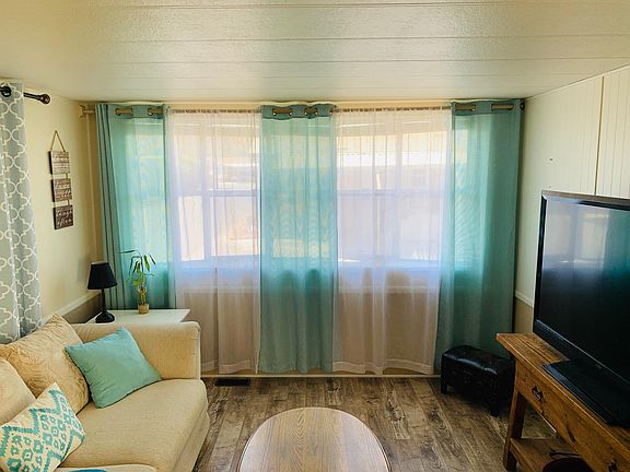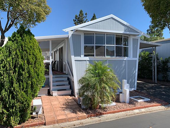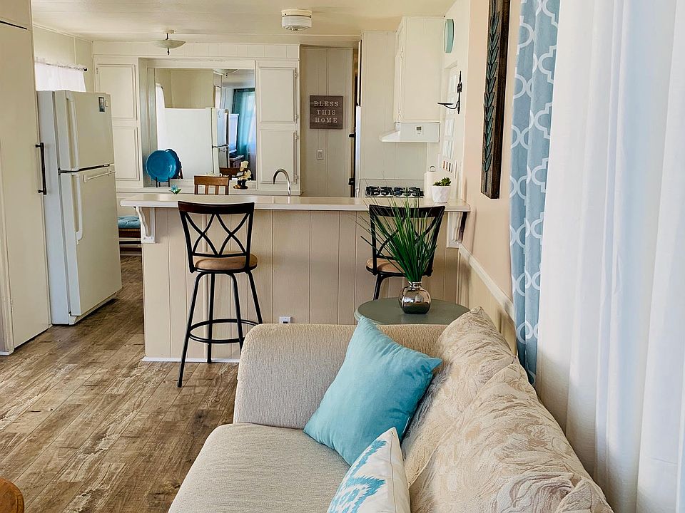 Light and bright single wide mobile home located in a great 55+ community.Great Affordable Opportunity to Own! Located in the highly desired Friendly Village Mobile Home Park.This approx 700sf 2+1 Mobile Home features wood like flooring, easy access shower and a spacious covered porch with views of the Topa Topa Mountains. There is also an additional little patio area, potting bench and 2 Sheds, one with washer and dryer. The other shed can be turned into an Artist Retreat, a Tool Shed with Work Bench or... with a Little Imagination, it Could be a Great Man Cave or a She Shed!! Plus the Carport is Large Enough For 2 Cars!The Active 55+ Community of Friendly Village Offers Many Amenities Including Pool/Spa, Spacious Sun Deck, BBQ's, Putting Green, Gym, Dog Run and Laundry Room.The Fabulous Rec Room Hosts many Activities Including Monthly Dinners, Bingo, Poker, Bunco, Exercise Classes...etc!