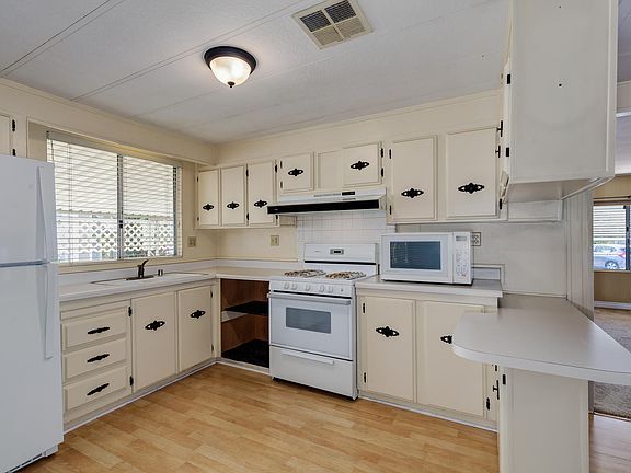 Friendly Village Simi is Senior (55+) Living at its best!! Don't miss this fabulous MANUFACTURED home built in 1978 after HUD changed to make building regulations more stringent. Walking into this home you'll enjoy the warm colors, beautiful wood laminate floor and the fresh, new carpet. It features two bedrooms and two baths with an open floor plan. The 1444 sf unit also has an additional 144 sf enclosed sun room!! Central A/C. HVAC &, refrigerator only two years old. Washing machine about three years old. The park offers many fabulous amenities a' beautiful clubhouse, putting green, pool & spa, game room, BBQ area, dog park, etc. Unit is on vehicle registration instead of property tax rolls.
