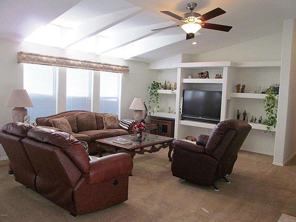 Absolutely Beautiful, Custom 2004, Move In Ready Home in highly desirable Friendly Village senior park. Nice architectural details throughout, spacious living room with gas fireplace, lovely dining room with slider to patio, large kitchen with island and loads of storage, laundry room, double door entry to guest bedroom with walk in closet, lovely guest bath with tub shower, amazing master suite with huge walk in closet and fabulous en suite Bath with large shower with seat, dual sink vanity, ''make up'' vanity and loads of storage. Wheelchair lift and other wheelchair friendly details.To many upgrades to list... cosmetic, structural, energy efficient, convenience, safety and more. This home has it all! Don't miss this opportunity