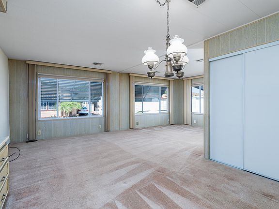 Welcome to beautiful Friendly Village, a 55+ community with living at it's best! This home features 2 bedrooms and 2 full bathrooms. Spacious dual vanity in the master bath also features a large soaking tub. Dining room with built-ins opens to a spacious living room and den area. Enclosed patio offers privacy, provides additional space and is accessible through both the living room and the master bedroom. Large skylight affords plenty of light in the kitchen. Newer HVAC system, and 2 outdoor sheds are included for additional storage space. Amenities include a large outdoor pool, indoor jacuzzi, BBQ area, fitness center, clubhouse, game room, dog park, and putting green. Plenty of shaded guest parking. This home is priced to sell! Don't miss out on living in this highly desired community!