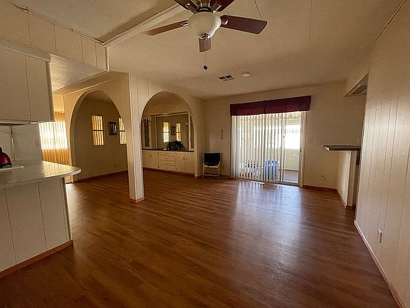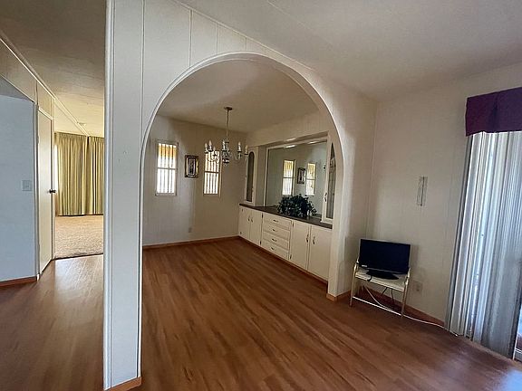 Incredible home with plenty of space and nice size yard. 1440 sf with an additional enclosed all season room, den or office area, wet bar, low rise steps in driveway, custom tuff shed with power, patio area, lots of built in cabinetry and closets, beautiful dining space, private living area, and so much more! Located in a land leased community, monthly site fees apply, must be age 55 or older. Price does not include charges for escrow, title, registration, property taxes, or admin fee.