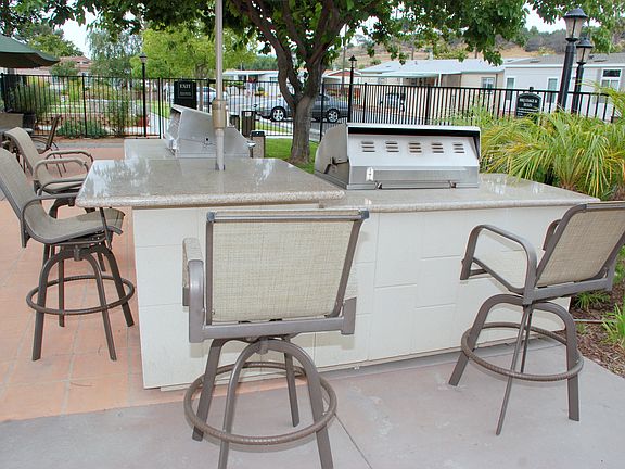 Resort living in Simi Valley! Beautiful grounds & community. This newer manufactured home has been tastefully updated w/beautiful & rich looking wood laminate flooring & offers 3 bedrooms plus 2 full baths with over 1400 sq.ft. of comfort & new paint. Nice open floor plan w/vaulted ceilings. Light, bright & airy. Master retreat offers custom built-ins, walk in closet, soaking tub w/glass block, separate stall shower & dual sinks. The gourmet kitchen offers a large pantry, center island w/pullouts, plenty of counter space, wood cabinets, recessed lighting & a nice skylight to brighten your day. Large living room w/vaulted ceiling & ceiling fan & light. Separate laundry facilities w/closet & access to covered parking. The community offers a huge Clubhouse/Rec Room, a huge swimming pool, Custom Granite BBQ Area, park like grounds, a putting green w/gazebo & a dog run area. One Occupant must be "55" +. Within Walking distance to the Strathearn Historical Park & Shopping & Freeway.