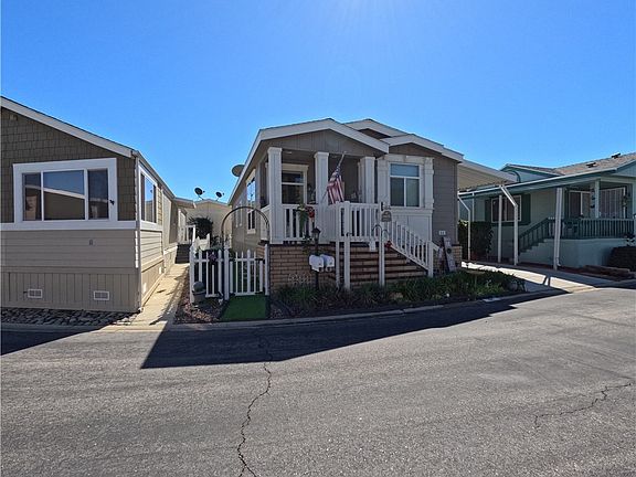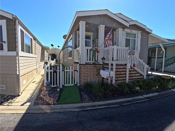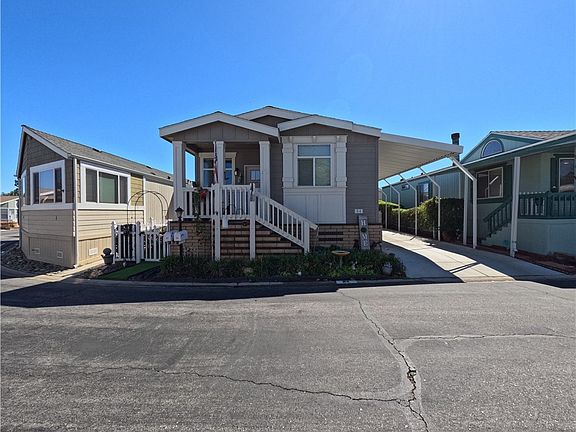 A new manufactured home built in 2020 is in the west Simi Valley area. This is one of the few senior communities on this level and is in the well-known Friendly Village community. Just steps from a major shopping center and Target stores, close to public transit access, and in an easy-to-find complex. Access is easy with a front porch and a side entry door. The ample driveway space with a private storage shed is a well-thought-out and great addition to this home. Besides the benefits this community offers the residents, this home utilizes its high ceilings and open spaces well. The kitchen is open to the family room, and the hallway provides access to the bedrooms, including the oversized main bedroom and main bathroom at the end, the side entry, the full-sized laundry room, and the large hallway bathroom. Custom upgrades include an SS appliance package, white shaker-finished cabinets, vinyl plank, bedroom carpet, and kitchen quartz counters. Friendly Village is an over 55 and older community; the park management must approve you. The park offers its residents add-on services, including; RV storage, a Club House, a Large swimming pool, a spa, a BBQ area, and several social and community activities and clubs.