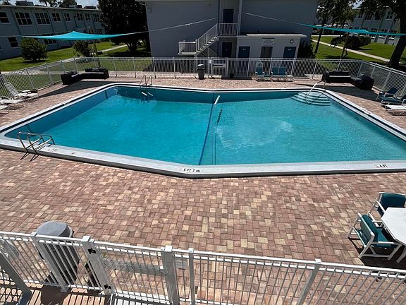 Resort style living under 200k with this 3 bedroom 2 bathroom co-op. Block unit is a rare one, first floor end unit. Pool views out of every window. Newly tiled floors, large walk in closet/ unit comes with its assigned carport & newer shed for all your beach items. Beach is five miles away. Full time management & maintenance crew make this property a top notch retirement, starter, or vacation home. The carrying fee of $625 per month covers water, sewer, property taxes, insurance, & exterior work on building including A/C. Hugh beautiful heated renovated pool area to enjoy. Electricity, internet, & cable are owner responsibility. Buyer must submit to a co-op application, credit check, & board application. May only be used as a primary home or secondary residence. CANNOT BE RENTED OR USED AS AN AIRBNB. CASH ONLY
