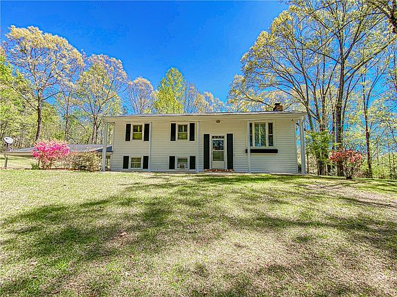 Welcome Home; as the paved driveway lined with azaleas passes a pond, leading to your private hilltop home with peaceful country setting. From the front porch, overlook a secluded front yard with flowering botanical features. Feel welcome as you step inside and notice the well-kept interior. This split level layout features a living area on both levels. The main level boasts hardwood flooring in the living room and large picture window letting in natural light. Easily flow into the kitchen with bright white cabinets and updated flooring before stepping onto the covered back deck, an ideal space to relax or entertain guests while overlooking your private backyard. A hallway leads to two guest bedrooms and a full bathroom before arriving to your primary bedroom with ensuite half bath. The current seller enjoys using the upper living room for a larger dining space to host family gatherings and uses the breakfast area as a cozy family den. This home provides many options for your desired use of space so use your imagination and create the ideal space for your family needs. The lower level features a second living/recreation area with gas log fireplace for cozy feel on a cool winter’s night. There is one bedroom and a detached bathroom on the lower level. A hallway leads to your spacious laundry room with built-in storage space and plenty of room to meet your needs, with access to the attached three car carport for added convenience. Outdoors, enjoy an expansive paver patio that is partial covered, an ideal space for friends and family to gather while enjoying a beautiful day. Storage is made easy with detached outbuildings and separate carport providing space for large boat or camper storage. This never before listed property has been home to the current owner for more than 50 years and is now being offered to someone else looking for the rare opportunity to own acreage with a spring fed pond, private setting and convenient access to Walhalla Town; a delightful town to explore on foot, with cafes, antique shops, parks, festivals, tree-lined streets and community activities, providing endless opportunity to enjoy hometown living. This home is along the way to the mountains so it is just minutes away from the wide variety of activities Oconee County and the surrounding areas have to offer, including an abundance of hiking and mountain biking trails, numerous waterfalls, fly fishing, Stumphouse Tunnel, the Chattooga River, the Blue Ridge Mountains, Clemson University, and more. Window unit cooling system with gas logs and electric wall heating units in each room heat and cool the home. Buyer is welcome to perform home inspection if desired, seller is unaware of any repairs needed and prefers to sale as-is. Roof replaced in 2011, septic system replaced approximately 15 yrs.