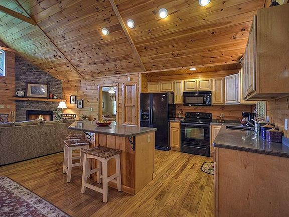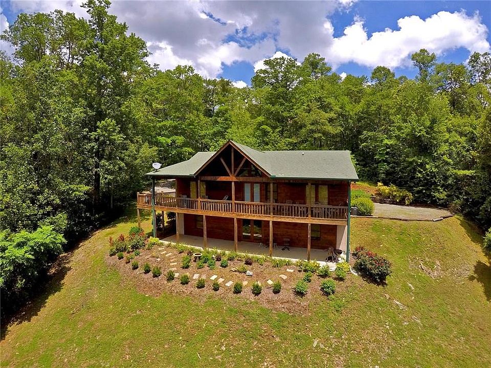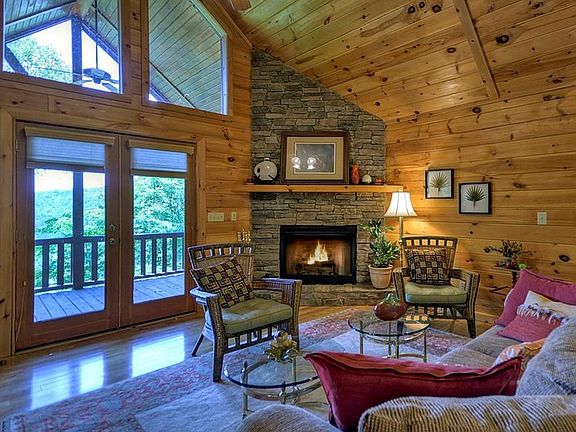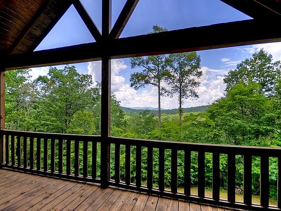Spacious PRIVATE cabin with 4 Bedrooms 3 full bath and Long Range Year round views on 3 ACRES within 1 Mi of Blue Ridge. Beautifully Finished Great room, Kitchen with hard surface counters, large master on main with ample master bath. 2 Full baths on the main floor, Split Floor Plan, Full Finished Basement with 2 Bedrooms, 1 Full Bath, Large media room and game room. End of the road privacy, quiet, wooded 3 ACRES with layered Mountain Views and you could walk to town.