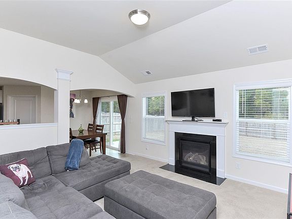 Great one-story open floor plan with easy access to flat backyard. Spacious Entry leads to large Great Room with gas fireplace, high ceiling, beautiful arches. Great clean kitchen with gas range, stainless steel appliances, granite countertops, built-in microwave over the range, white cabinets, eat-in bar and sunny dining area with view and direct access to backyard. Roomy heated laundry with plenty of room for washer and dryer plus shelves for storage. Bathrooms have granite countertops and white cabinets. Hall bath has tub/shower combo while Master Bath has shower. Blinds and beautiful arches throughout house. Fully privacy fence in flat, easy to maintain backyard. Transferable termite bond. Within minutes to I-26 access. 20 minutes to downtown Columbia and Lexington. Quick access to airport.