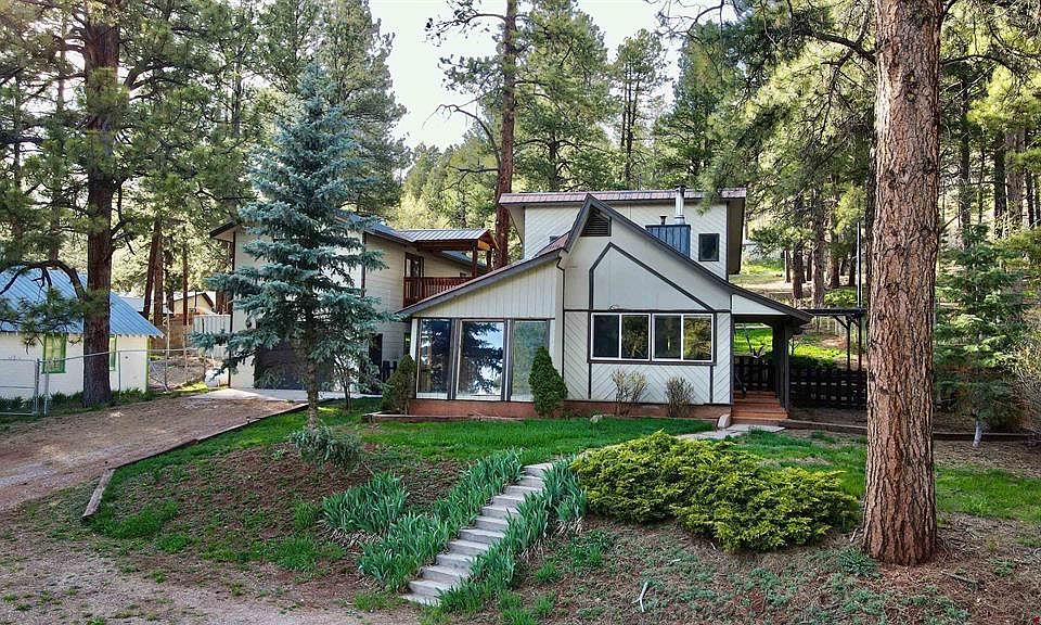 Charming single-family home in the heart of the pine forest now available. The property features a main home with two bedrooms and two bathrooms PLUS an attached bonus room above the garage of 900 square feet with full bathroom, two rooms, fireplace, and separate entrance. This unique property offers a serene escape from the hustle and bustle of city life, all while maintaining modern comfort within 30 minutes of downtown Durango and 20 minutes of Bayfield. The main home boasts ample living space with lots of natural light, original hardwood floors, a spacious living room with vaulted ceiling, sunroom, a fully equipped kitchen with newer appliances, and classic wood-burning stove that keeps the home warm throughout the winter. The main bedroom has vaulted ceilings, an ensuite bathroom, and walk-out to the deck with breezeway to the bonus room above the garage. The "bonus room" makes for a perfect home office, workout space, or extra living space. Other amenities include but are not limited to: a whole house water filter system, new water pump, new range/oven, fresh paint, fully fenced yard (plus deer fenced garden), shed, and heated detached garage with attached shop. Enjoy the peace and tranquility of the San Juan Forest right in your own backyard and experience all of the amenities that Vallecito Reservoir has to offer at this fabulous mountain retreat!