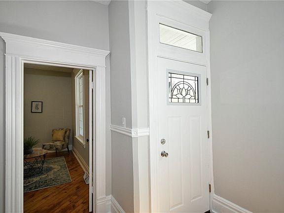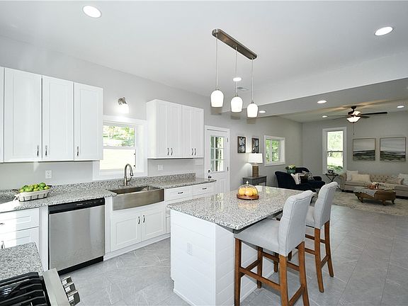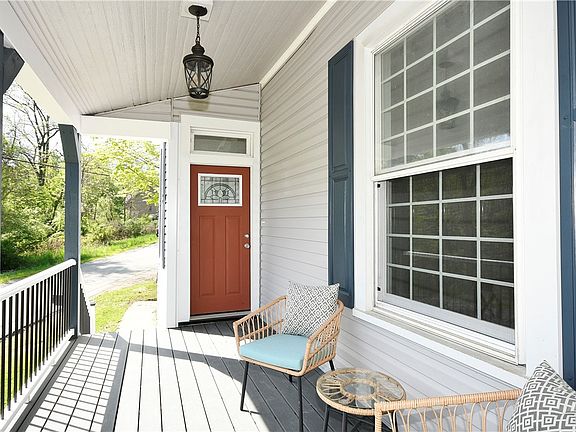 Stunning farmhouse! Thoughtful reno preserving the original details & integrating modern conveniences like a walk-in pantry, 1st fl laundry,lrg walk-in closet in the primary BR & en-suite BA. Refinished knotty pine floors flow throughout the home, laid diagonally on the main level by the original builder. This grand home features ornate wood working details in the elaborate staircase that splits 1/2 way up to the 2nd fl giving privacy to the front & back BRs. This home is a rare find w/ 11 ft ceilings, 5 marble mantels, orig. built-in china cabinet w/leaded glass & most of the original woodwork entact. BRAND NEW windows, roof, furnace, AC all new white kitchen w/granite, SS appliances. 3rd Fl potential w/HUGE part. finished attic space. Enjoy 1.17 acres of mature landscape that backs up to a walking trail & Billy Bell Park/playground. Explore the wooded lot to find the foundation of the original springhouse still standing & host a bonfire for your friends around the built in firepit.