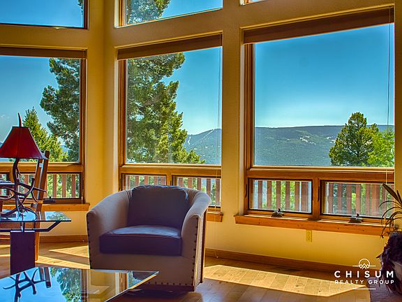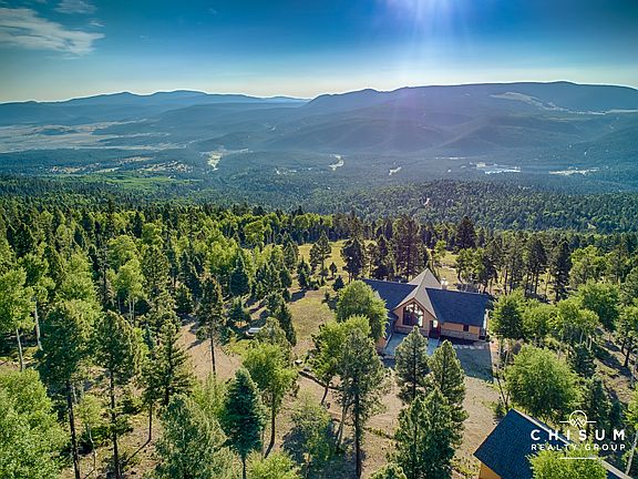 The journey begins as you approach the top of the mountain. Then the private driveway leads you down to this hidden gem of an estate. Over 43 picturesque acres with only wildlife as your neighbor and your views will always be protected. And what a view it is! By far the best view in Angel Fire with views that include Osa Mountain to the south, Monte Verde Lake to the east, and the Sangre de Cristo Mountains to the north spanning all the way to Colorado. And these views can be enjoyed from every room in the house and multiple outdoor living spaces including, two monolithic flagstone tables and a fire-pit that sits in a sprawling meadow that's large enough for snowmobiles in the winter and ATV fun in the summer! Additionally, the home has a large wrap around deck and 2 covered decks off of the first floor bedrooms. Inside, you'll find an open and livable great room with hardwood flooring, vaulted tongue and groove ceilings, fireplace and again, those big mountain views! The kitchen is sure to impress with granite countertops, StarMark rustic hickory cabinets, and SubZero & Wolf appliances. The master suite is in the north wing of the first floor with large windows, fireplace, and an ensuite bath with dual sinks, tile shower and a jetted tub. On the southern wing you'll find the guest suite with an ensuite bath. The walkout lower level features another full bath and a large room that's a great second living space or a guest suite with it's mini-kitchen. Finally, the home has an attached 2 car garage and a detached 1,350 sq ft 4 car tandem heated garage and workshop. A truly impressive property that needs to be toured!