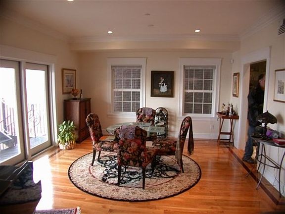 East Bostons most sought after location, Jefferies Point. This 1800 s.f. two bedroom apartment is like no other in East Boston. All hardwood floors with cherry border. Both Bedrooms have private baths with jacuzzi's and one has a separate shower and steam.Extra storage and one parking spot. Washer and dryer in unit. Kitchen fully appplianced. Gas heat and central air conditioning.Gas fireplace Fantastic views of the harbor and Bostons skyline. Short walk to Maveric Station and minutes to downtown. Parks in front of building and other parks for walking, running or just enjoying views. East Boston residents get a special permit for the Ted Williams tunnel discount. Owner is paying broker fee
