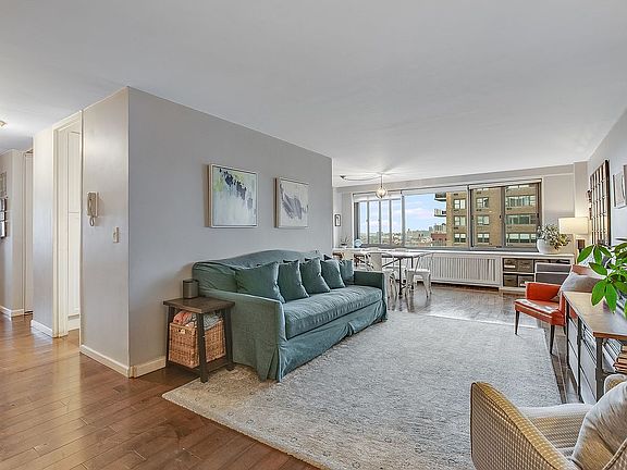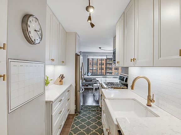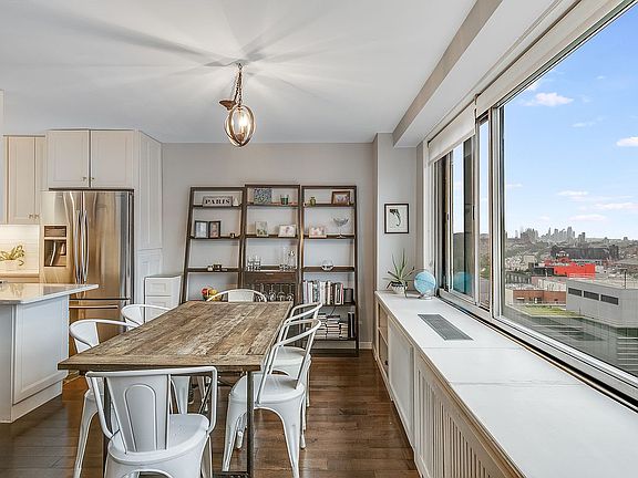 Perched high on the 14th floor, light abounds in this beautifully renovated home. This meticulous corner apartment offers breathtaking views, prominently showcasing the Manhattan skyline. Through the entrance foyer, you are greeted by an oversized living room and dining area with a wall of windows. Scale and refinement will be top of mind as you take in this wonderful property, where no detail was overlooked. The kitchen, which underwent a tasteful high-end renovation boasts quartz countertops, subway tile backsplash, stainless steel appliances, a deep farmhouse style sink, and an abundance of white custom cabinetry (including a large pantry). The three generously sized bedrooms can each accommodate a king sized bed. The primary bedroom is replete with a renovated ensuite bath and a large balcony that is highlighted by unobstructed views of the city. Six built-out closets, as well as sophisticated built-ins in the living room, offer a boast worthy amount of storage.