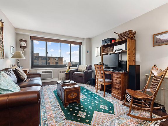 Welcome to your NEW HOME!! Enter into this Beautiful, Sun filled 1-bedroom apartment. Located on the 16th floor of an elevator building. Unit #1607 is a corner unit boasting North East/Eastern sun exposure, so you will wake to the sunrise. This capacious apartment has chocolate bamboo wood flooring through-out the entire unit. The living room is spacious enough to accommodate a sizable sitting area and a separate dining space. Each room has oversized windows overlooking the Pratt Institute campus and gives spectacular unobstructed views. The unit also boasts significant closet and storage space as well. The kitchen includes a brand-new stainless-steel LG refrigerator and Bosch stainless steel dishwasher. You'll also be able to cool off on a hot summer day with discreetly positioned wall-through Friedrich/Frigidaire air conditioners in both the living and bedroom. Nestled on a quiet tree lined block in the heart of Brooklyn's historic Clinton Hill, is The Willoughby Walk. This complex consists of two 287-unit High Rise buildings, 195 Willoughby Ave and 185 Hall Street. Willoughby Walk offers a financially sound and well serviced complex. Amenities include 24-hour entrance staff, whom are always ready to greet you. A guaranteed on-site management and supers allow for easy and swift assistance as needed. Laundry is available in the lower level as well as the option to obtain private storage and parking. Subletting is case by case with board approval while co-purchasing, pied-a-Tierre, and guarantors are allowed. The minimum down payment requirement is 10%. Willoughby Walk is conveniently located by many amenities right off Myrtle Ave. Go grocery shopping at Myrtle Plaza and Wegmans. Get your hands dirty with the Brooklyn Grange, which is the world's leading soil rooftop farming company. Create movies and shows at Steiner Studios. Lastly, take up an Art, Design or Architecture class over at the Pratt Institute. Your options are many. 195 Willoughby Ave is also a short distance from the A, C and G trains, all of which can efficiently take you anywhere you need to be. **Photos are virtually staged** Call, Text, or Email me today to schedule an appointment and make your NEW HOME at The Willoughby Walk!!