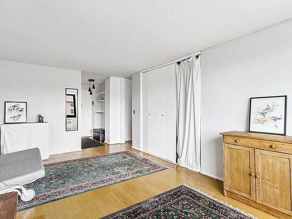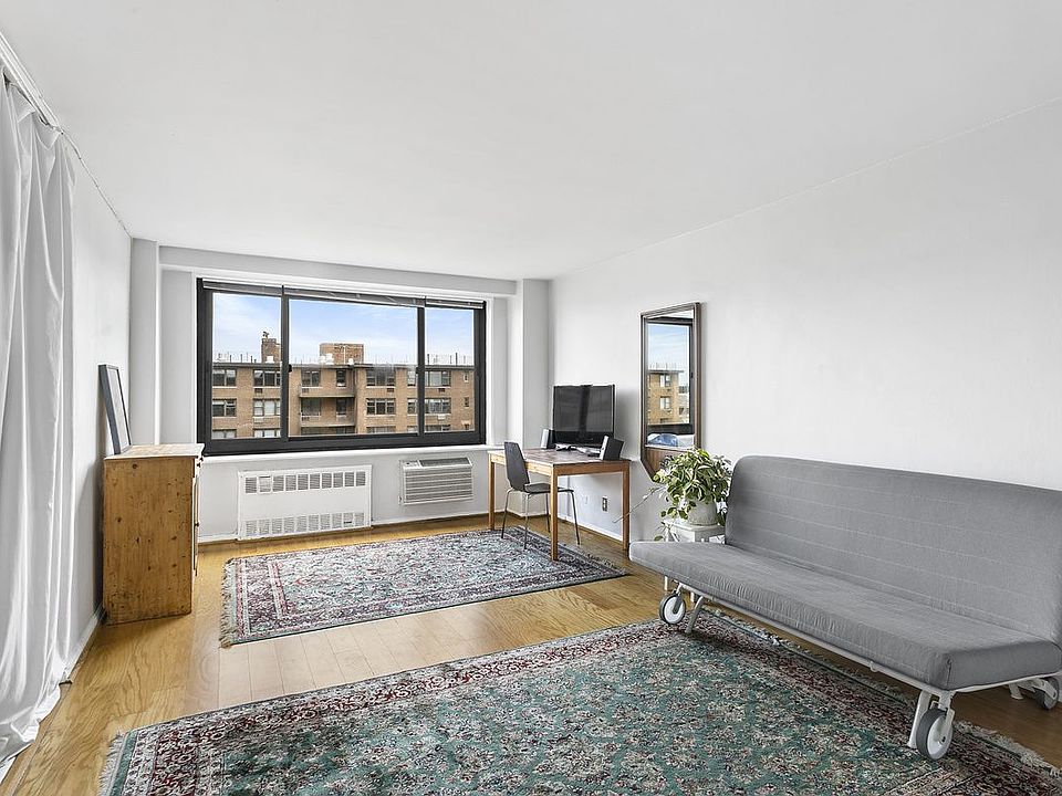 Great views and light in this studio on the 16th Floor at the Willoughby Walk co-ops. The apartment is just under 400 square feet, intelligently laid out with kitchen and bath to either side of the entry. The living space feels large and open because of the oversized windows with northwestern light. The co-op features access to a private courtyard with 24/7 on-site security, laundry facilities, on-site superintendent, and maintenance/porter staff. FreshDirect (online grocer) and BubbleWorks (launder/drycleaner) provides door-to-door service. Located in the Clinton Hill Historic District, the building is directly across from the Pratt Institute gardens. Via bike or foot, you are a short distance from Fort Greene Park, the BAM Cultural District, Pratt Institute, Steiner Studios in the Brooklyn Navy Yard, and Brooklyn Heights Promenade.