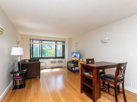Welcome to Willoughby Walk the desirable Cooperative Building in Prime Clinton Hill! Situated on the fifth floor you will enter this sun filled corner one bedroom unit with large windows illuminating with sunshine, and the picturesque view of lush trees surrounding Willoughby Walk. The expansive open airy Living Room and Dining area is equipped with a built-in bookcase enhancing the space for versatility to utilize for work at home options or a study to enjoy the next best seller. A separate bright kitchen with new stainless-steel appliances and plenty of cabinets compliment this unit perfectly. Right off the bedroom is the beautifully tiled bathroom with a pedestal sink and a custom shelf for storage. More natural sunlight awaits you in the large Bedroom with oversized windows. There is more to be desired in this lovely well cared for unit, you will be delighted to have large double closets with custom builds to store all of your cherished personal items and beautiful maintained bamboo floors adds the finishing touch. The Willoughby Walk community in Clinton Hill has great transit options to Manhattan and across Brooklyn; accessible to the G train at Clinton/Washington and the B54, B69, B38 bus lines. A plethora of restaurants along Dekalb and Myrtle Ave, close to downtown for shopping, and directly across the street from Pratt Institute. Nearby Fort Greene Park is an added bonus for outdoor fun and Brooklyn Navy Yard Wegmans for your grocery shopping needs. You will feel secure with 24-hour security and a maintenance staff onsite. Easy access to a laundry facility in the basement and storage. For the cyclist in you, there is a citibike station along Willoughby Ave and bike storage available in the building. Willoughby Walk is a pet friendly community, so your furry companion is welcome. The community has parking available with a wait list. Do not delay and schedule your tour today at an upcoming Open House and make Willoughby Walk your new home, there is so much that awaits you in the heart of Clinton Hill!