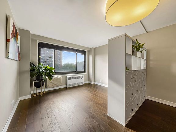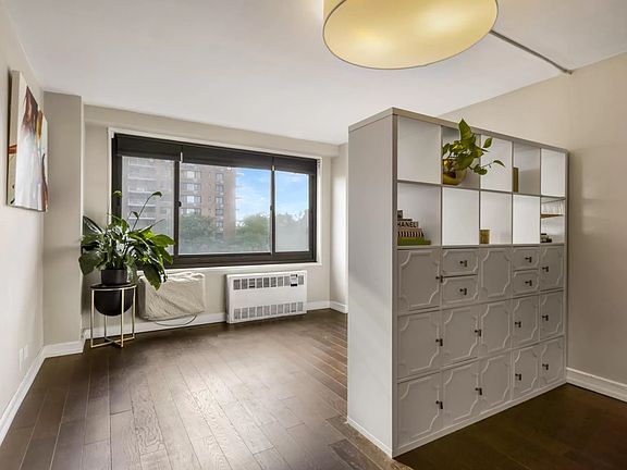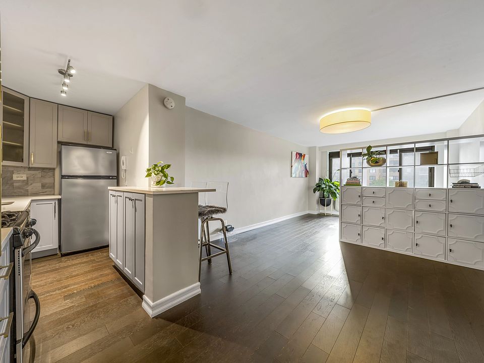 Move into luxury and style in this large, fully renovated Clinton Hill studio. Every inch of this apartment has been masterfully designed to feel spacious, airy, and modern. The large south- west facing wall-to-wall windows boast bright natural light from above the tree line, afternoon sunshine, and evening sunsets. The full kitchen has been impeccably designed with hardwood cabinets, quartz countertops, stainless steel appliances, a dishwasher, a full pantry cabinet, and a bar-height peninsula with seating. Hardwood floors throughout give the unit an open, expansive feel, while the moveable room divider doubles as storage and decor space and offers the perfect balance between open concept and separate living spaces. The full bathroom is bright and open thanks to its pocket door entry and glass shower panel. The walkthrough closet/dressing room offers over 150 cubic feet of customizable storage and can also be used as a home office. The unit is located in the desired Willoughby Walk Coops and is just steps away from shopping and restaurants on Myrtle Avenue, and only a few blocks from Fort Greene Park and DeKalb Avenue's restaurant row. This post-war, medium-rise residence is located across the street from the beautiful Pratt Institute campus and offers 24/7 security and maintenance teams, a live-in super, basement laundry, and nearby street parking and Citi Bike. There is a waitlist for private storage and private parking. Subletting is on a case-by-case basis with Board approval. Co-purchasing, pied-a-terre, and guarantors are allowed. Pets are welcome. Walking distance to award-winning restaurants, shopping, schools, and transportation, and minutes away from Manhattan via subway and car. Don't miss out on this opportunity to own a spacious, renovated space in the heart of historic Clinton Hill.