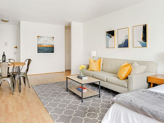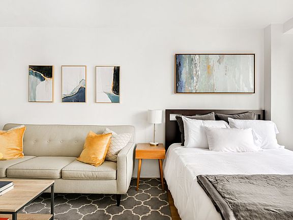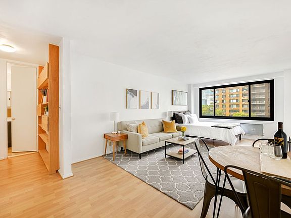Views of the Freedom Tower!! This sun-flooded high-floor studio feels bright and spacious thanks to its oversized windows and northwestern exposure. This home has been thoughtfully laid out with a separate kitchen and bath tucked away from the living space. Walking past the entryway, you have plenty of space for a queen-sized bed, living area, and dining room furniture and the built-in shelving, as well as two large closets, provide enough space for all of your storage needs. 195 Willoughby Ave is a well-maintained full-time doorman building in the heart of Clinton Hill. The building is pet-friendly and has on-site laundry and bike storage. Private parking is also available in the building's lot on a waiting list. Subway transportation just minutes away with the G train close by! Conveniently located across the street from the Pratt Institute campus, you also have direct access to the dozens of restaurants along Dekalb Ave and multiple great shopping options on Myrtle Ave. Co-purchasing and parents buying for children allowed.