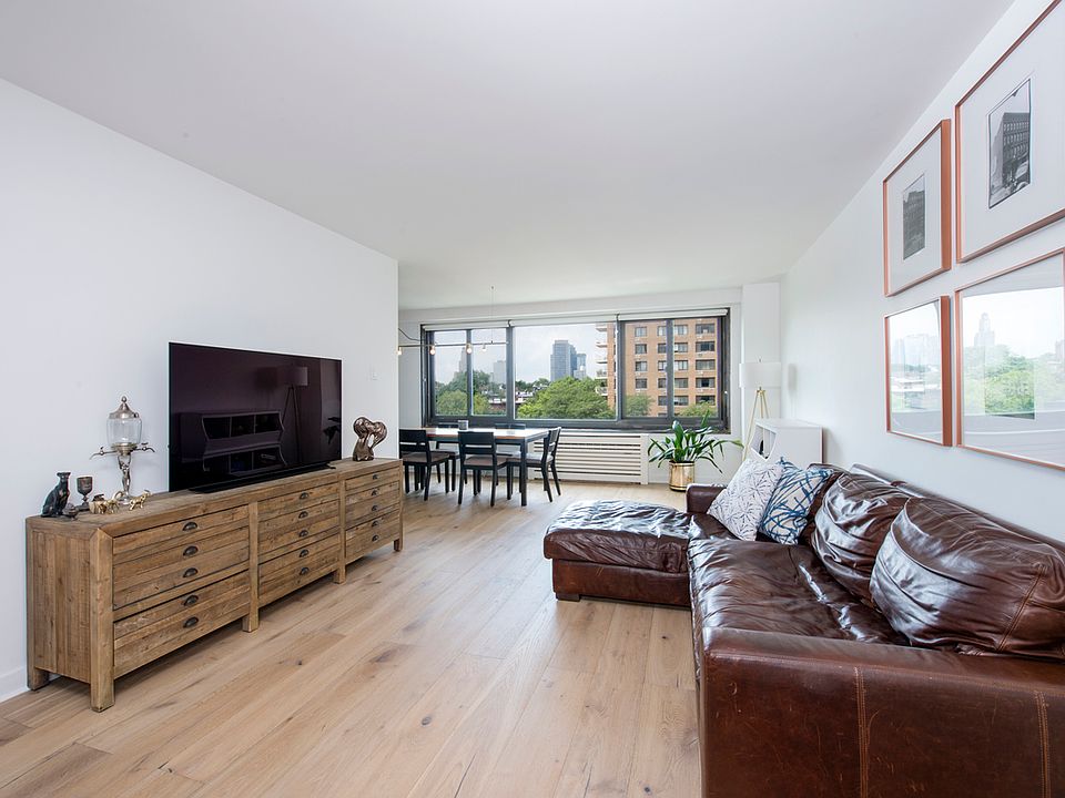 Light, bright, modern and spacious 2 bedroom, 1.5 bath Clinton Hill apartment at the Willoughby Walk cooperative with a huge private terrace! This very recently, completely renovated and updated gem awaits you, to enjoy refined living in a prime Brooklyn neighborhood. Beyond the home's entry foyer is a generous living room and open dining area brightened by a wall of western windows overlooking treetop and city views. Lovely hardwood floors pour throughout the space adding warmth and elegance. Adjoining the dining alcove, the large, finely-redone chef's galley kitchen is a knockout with sleek cabinetry, gorgeous countertops, decorative tile backsplash, and high-end stainless steel appliances. The master bedroom is a divine retreat with a lovely half bath that's en-suite, and glass door leading out to the expansive covered terrace that faces the Pratt Institute campus and sculpture garden as well as the beautiful tree-lined brownstone streets of charming Clinton Hill. A second bedroom, full hall bathroom, and substantial closet and storage space complete the comfort. This well-run, majority owner-occupied co-op building boasts healthy financials, a 24-hour maintenance and security staff, new laundry room, basement storage, and waitlisted private parking garage, though street parking is also accommodated. Plus there's a private outdoor children's playground in the complex. The great location at the corner of Hall and Willoughby affords access to a private walkway right outside your door to Myrtle Avenue offering restaurants, boutiques, grocery stores and conveniences. You're also minutes from lush Fort Greene Park, DeKalb Avenue with its wide assortment of eateries, and public transportation like the nearby G train and bus service to Midtown. Pets allowed.