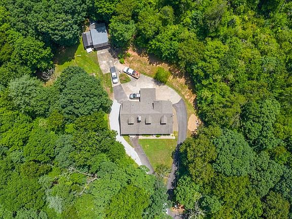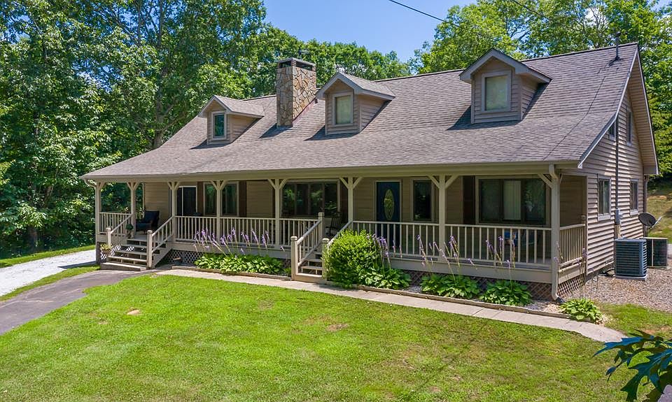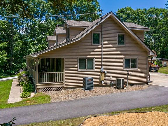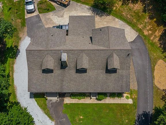 Privacy and quiet at the end of the road yet near shopping and close to town. This home has so much room! The front door enters into a great room with living/ kitchen area combined w/ breakfast bar space . A stone fireplace with a woodstove insert will keep you cozy warm on those cool winter nights. French doors lead from the great room to the formal dining and from there into a 2nd living area with the 2nd wood burning FP and French doors out to that large front porch. From this room you can go upstairs to the large master en-suite and walk-in closet. Back on the main level is the laundry room with lots of storage and access to the back yard. Then off the great room on the main level are two bedrooms w/ walk-in closets and a full bath. Also from the great room is a 2nd set of stairs leading to a bonus room with a large full bathroom with walk-in shower, soaking tub & a big window for lots of natural light. The front porch measures about 59' long so plenty of room to sit and relax. The paved circle drive leads around the back of the house with a single carport attached and its even paved to the workshop & woodshed near the back of the lot. Off the porch is a firepit area